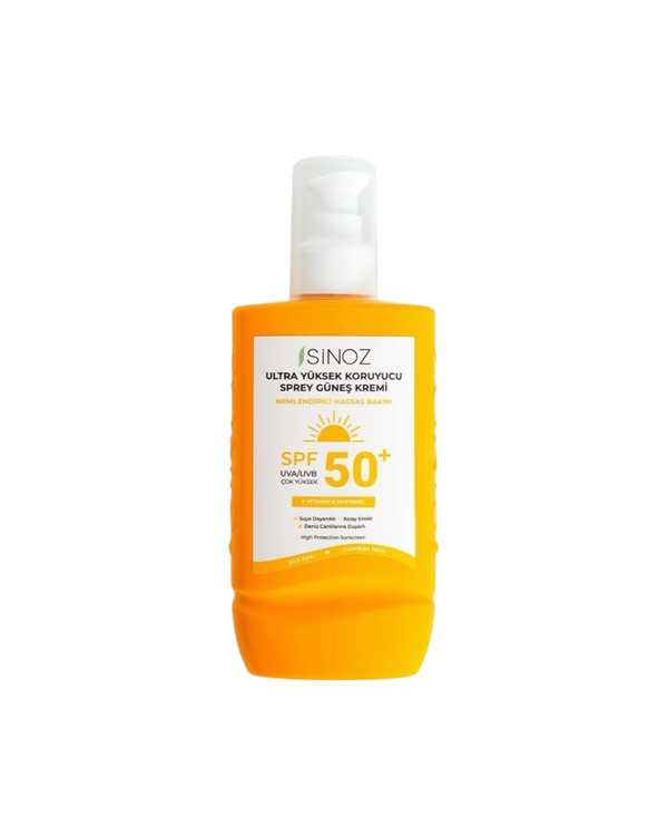 اسپری ضد آفتاب SINOZ با SPF 50+ و فرمول مقاوم در برابر آب، محافظت کامل و ماندگار در برابر اشعههای مضر خورشید را فراهم میکند.