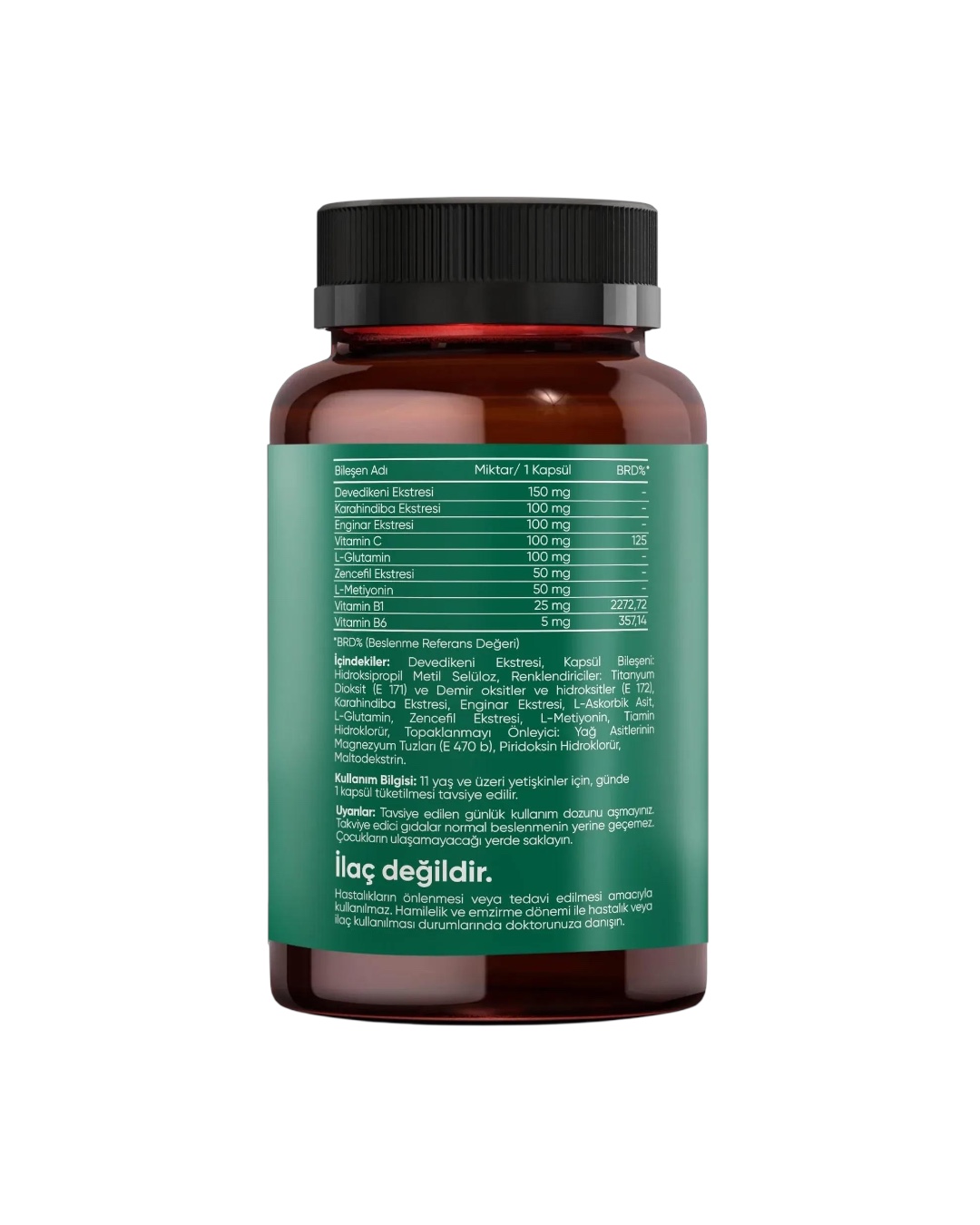 این یک مکمل غذایی حاوی عصاره خار مریم، قاصدک و کنگر فرنگی به همراه ویتامین C، ال-گلوتامین و عصاره زنجبیل است.